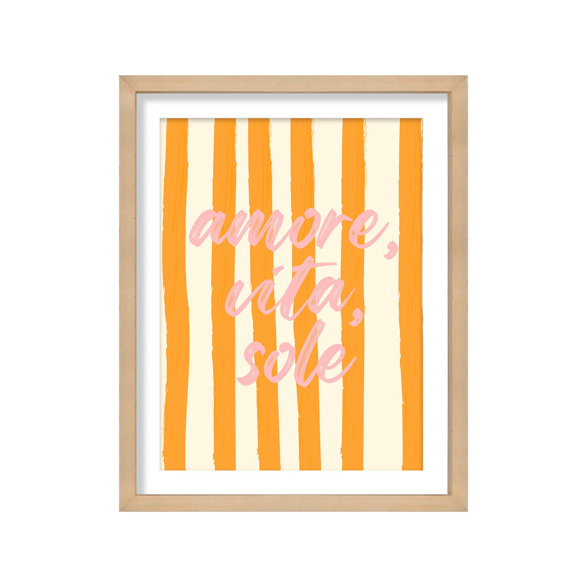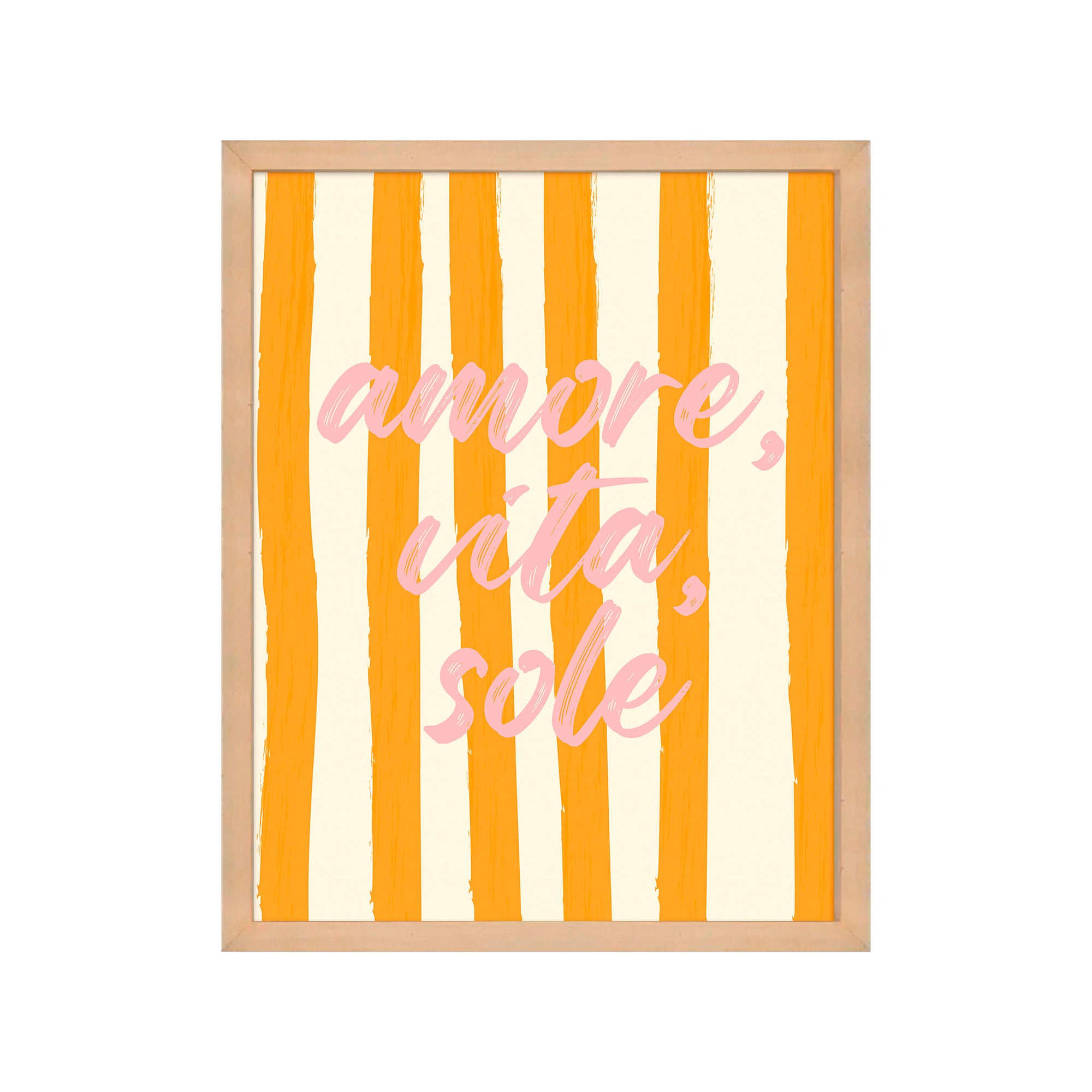 Lámina impresa en papel libre de ácido, marco de madera y vidrio brillante.