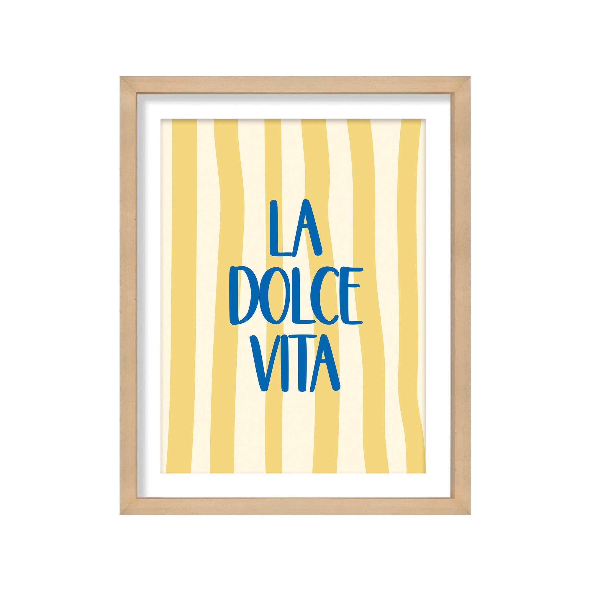 Lámina impresa en papel libre de ácido, marco de madera y vidrio brillante.